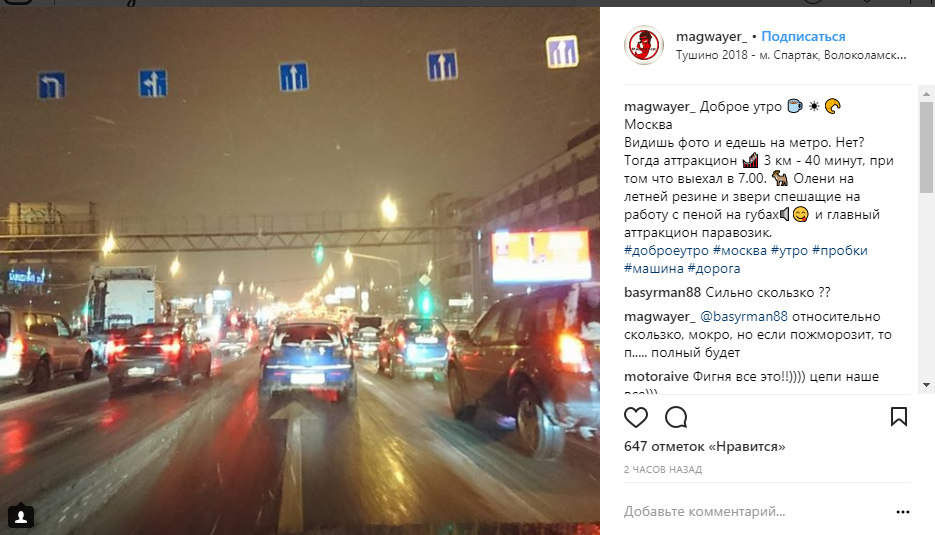 Основные затруднения в движении автомобилей - на въезде в город и на МКАД. Причины-погодные условия и рост мелких ДТП.