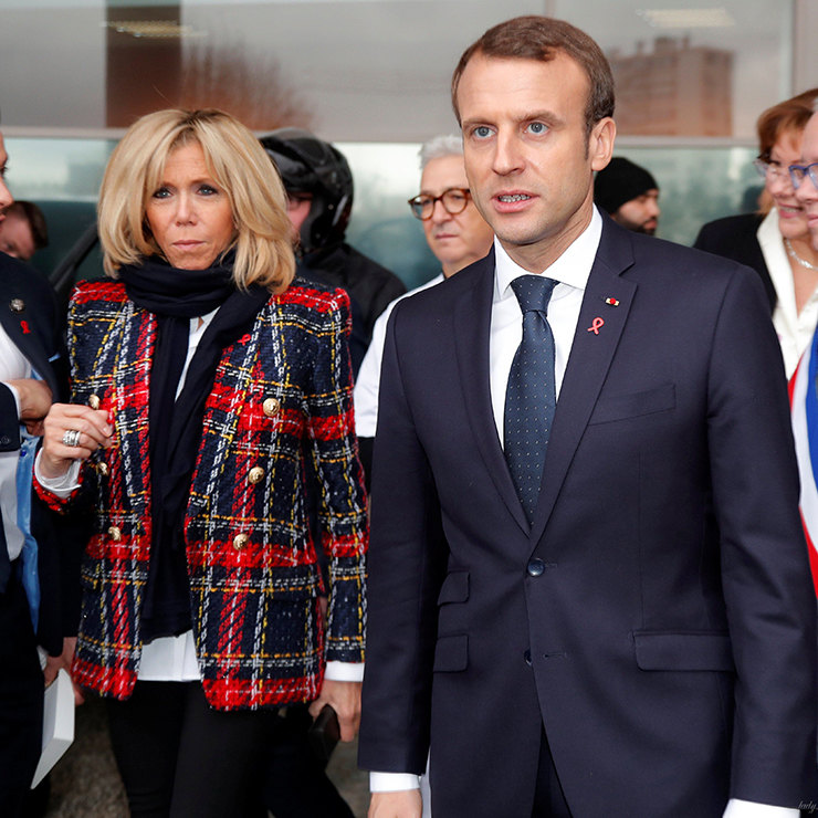 Президент Франции Эммануэль Макрон и его супруга Бриджит во Всемирный день борьбы со СПИДом посетили больницу Делафонтейн в Сен-Дени. 64-летняя Бриджит Макрон выбрала черные скини, жилет, белую рубашку и яркий твидовый жакет от Balmain, стоимостью 1370 евро.