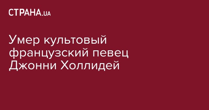 Известный французский рок-певец и композитор Джонни Холлидей умер в возрасте 74 лет. Об этом сообщает Le Huffington Post со ссылкой на жену певца Летицию Холлидей.