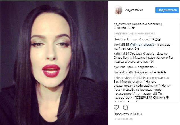 Известная певица Даша Астафьева, солистка группы Nikita заявила, что ей вернули угнанный ранее автомобиль.