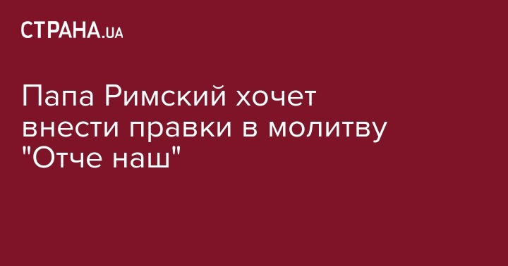 Уточнить текст молитвы "Отче наш" решил папа Римский Франциск.
