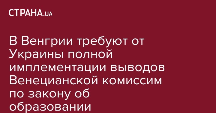 Глава МИД Венгрии Петер Сийярто высказался за полную имплементацию Украиной замечаний Венецианской комиссии по закону об образовании.