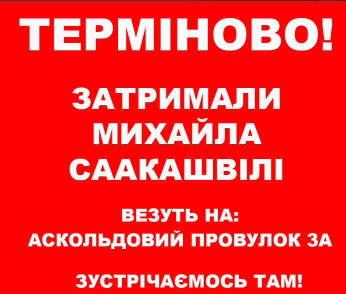 На странице Саакашвили в соцсети Facebook  после его ареста появился призыв к его сторонникам прийти на Аскольдовый переулок, 3а.