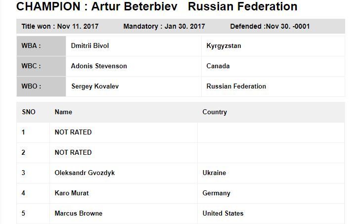 Ранее 11 ноября россиянин Артур Бетербиев нокаутировал немца Энрико Келлинга и стал чемпионом мира в полутяжелом весе по версии IBF.