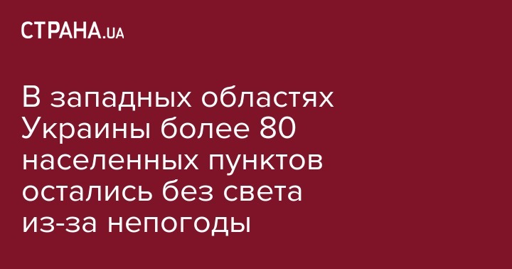 В Закарпатской и Львовской областях 84 населенных пункта остались без света из-за плохих погодных условий: дождя, снега и налипания мокрого снега на проводах. Об этом сообщает пресс-служба ГосЧС.