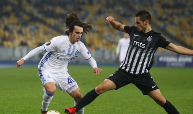 Шапаренко в матче против Партизана, фото: fcdynamo.kiev.ua