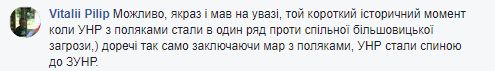 Некоторые пытаются найти какое-то пояснение словам президента: "Возможно, (он) имел в виду тот краткий исторический момент, когда УНР с поляками стали в один ряд против общей большевистской угрозы".
