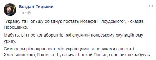 Эти слова вызвали гнев националистически настроенных блогеров. Они напомнили Порошенко, что Пилсудский отобрал Западную Украину и проводил там репрессии украинского населения.