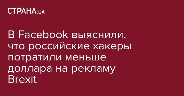 В Facebook выяснили, что российские хакеры потратили меньше доллара на рекламу Brexit