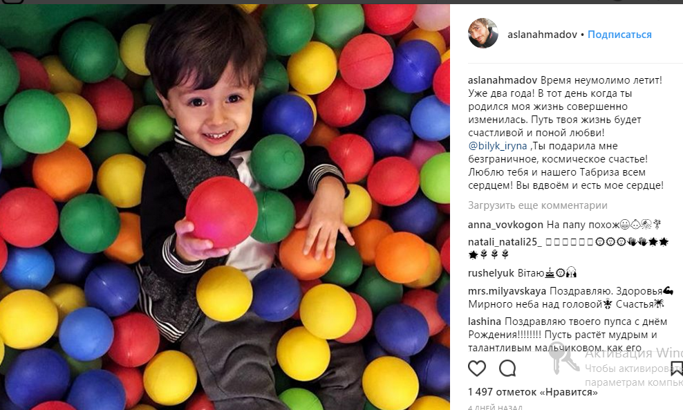 Украинская певица Ирина Билык вместе с мужем Асланом Ахмадовым отпраздновали день рождения сына Табриза. На днях мальчику исполнилось два года.  Фотографиями, а также видео с дня рождения наследника, на странице в Instagram поделился звездный отец Аслан Ахмадов.