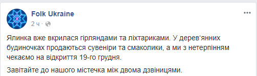 Церемония торжественного зажжения огней на главной новогодней елке Украины состоится 19 декабря на Софийской площади в Киеве.
