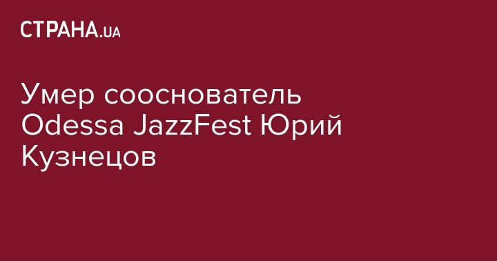 Популярный джазмен, который выступал одним из основателей Международного джазового фестиваля Odessa JazzFest Юрий Кузнецов умер в ночь на второе мая. Смерти предшествовала тяжелая болезнь, сообщила его жена Наталья Эртнова в соцсети Facebook.