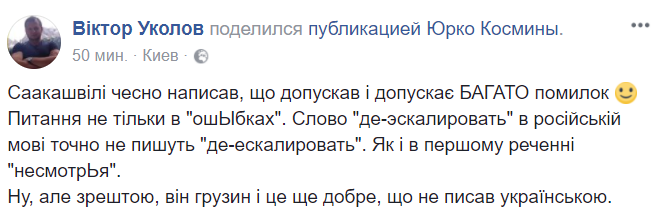 "Саакашвили честно написал, что допускал и допускает много ошибок. Вопрос не только в "ошЫбках"", - пишет политтехнолог Виктор Уколов.
