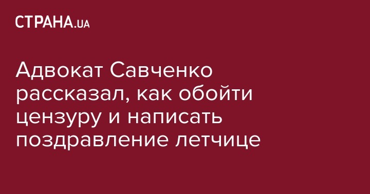 Кроме того, адвокат украинки отметил, что писать свои поздравления лучше на русском языке. "Если на украинском - цензура может задержать и Савченко эти письма увидит гораздо позже", - пояснил адвокат.