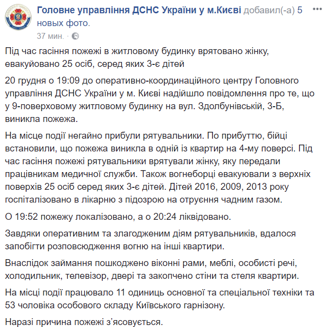 На месте происшествия работало 11 единиц основной и специальной техники и 53 человека личного состава Киевского гарнизона.
