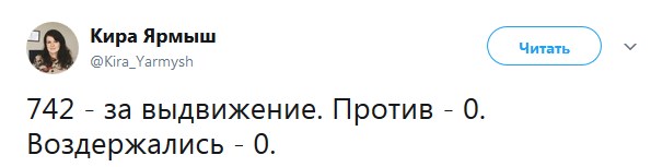 В воскресенье, 24 декабря, Алексея Навального выдвинули кандидатом в президенты на собрании избирателей в Москве. За это проголосовали 742 человека. Об этом сообщила пресс-секретарь политика Кира Ярмыш в Twitter.