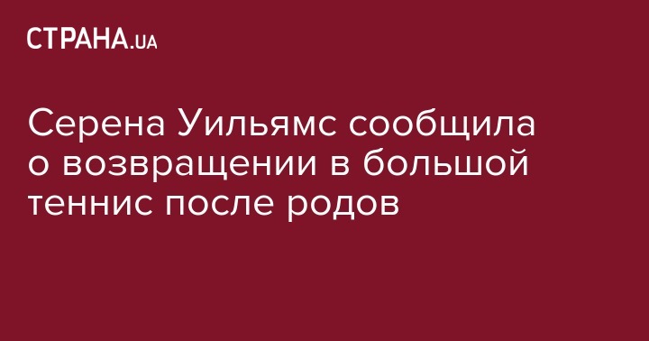 Серена Уильямс сообщила о возвращении в большой теннис после родов