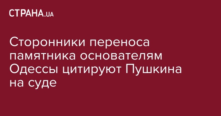 Представитель сторонников переноса памятника основателям Одессы - Екатерине II, де Рибасу, де Волану, Григорию Потемкину и Платону Зубову, рассказывая в суде о том как Екатерина Вторая оккупировала Украину, ссылается на Александра Пушкина.
