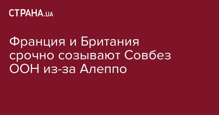 Франция и Великобритания решили созвать срочное заседание Совбеза ООН из-за ситуации в сирийском городе Алеппо, сообщает AFP.