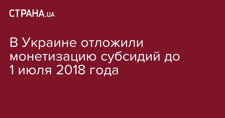 В Украине отложили монетизацию субсидий до 1 июля 2018 года