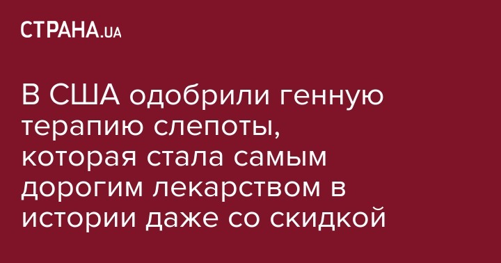 В США разрешили использовать препарат, который может помочь людям с редкой формой слепоты. Он может стать одним из самых дорогих лекарств в мире из-за цены в $850 000 уже со скидкой.