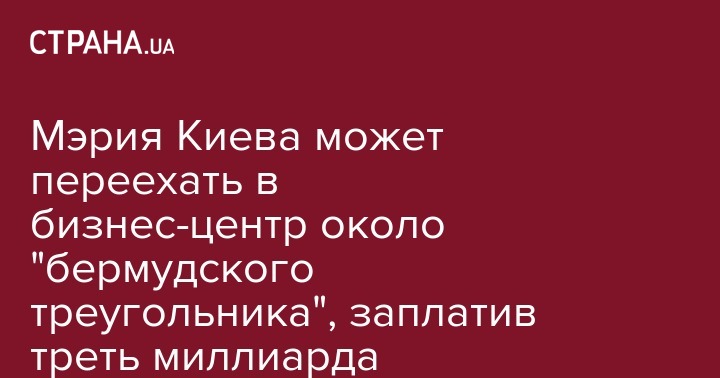 Мэрия Киева может переехать в бизнес-центр около "бермудского треугольника", заплатив треть миллиарда долларов