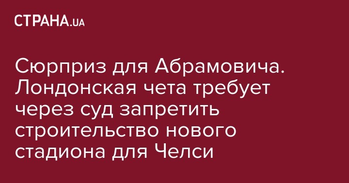 Вокруг строительства нового стадиона для "Челси", клуба российского олигарха Романа Абрамовича, появился неожиданный поворот. Семья из Лондона подала в суд, требуя запретить строительство из-за своих опасений, что солнечный свет перестанет попадать в окна их дома.