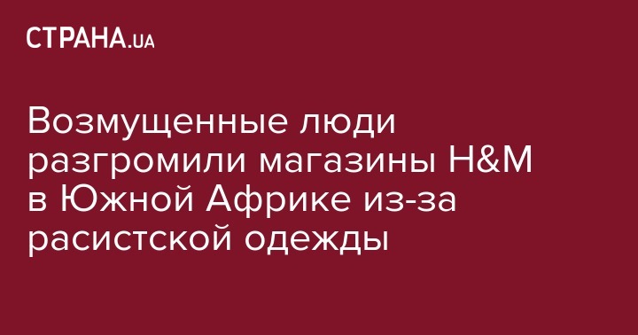 В субботу, 13 января, в Йоханнесбурге и Претории протестующие атаковали несколько магазинов H&M. Это произошло из-за рекламы, в которой митингующие увидели грубые проявления расизма. Об этом сообщает ВВС Украина.