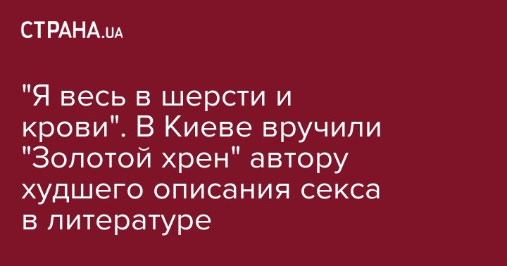 "Я весь в шерсти и крови". В Киеве вручили "Золотой хрен" автору худшего описания секса в литературе