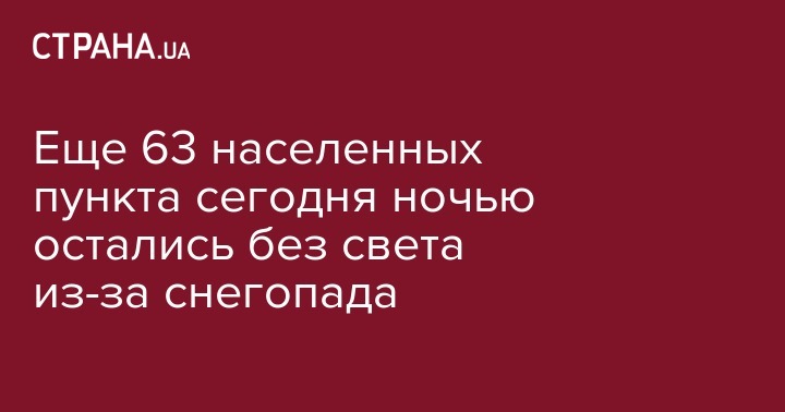 Еще 63 населенных пункта сегодня ночью остались без света из-за снегопада