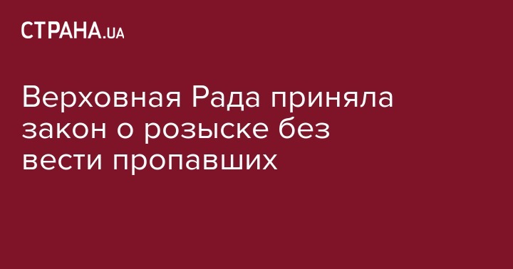 Верховная Рада приняла в первом чтении проект закона о правовом статусе лиц, пропавших без вести (№5435).  За это решение проголосовали 235 народных депутатов из 311, зарегистрированных в сессионном зале.