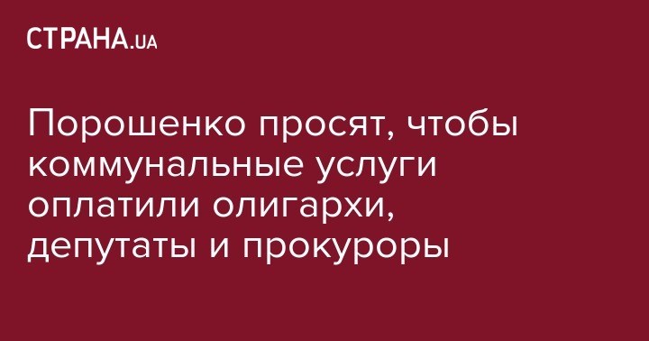 Порошенко просят, чтобы коммунальные услуги оплатили олигархи, депутаты и прокуроры