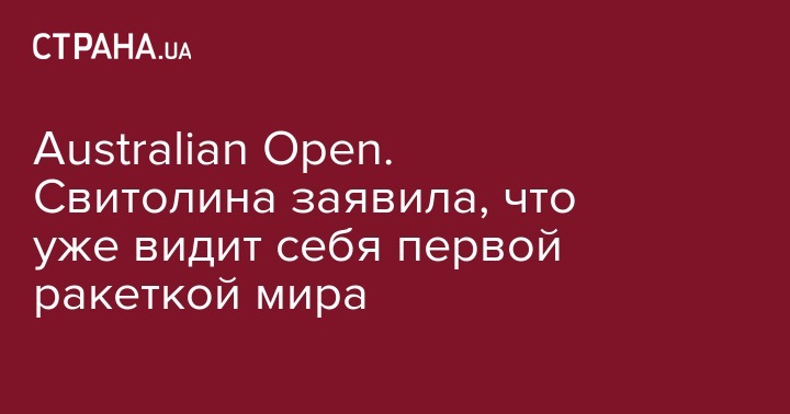 Украинская теннисистка Элина Свитолина после своего первого в карьере выхода в четвертьфинал Australian Open, заявила, что видит себя первой ракеткой мира, хоть это и непростой путь.