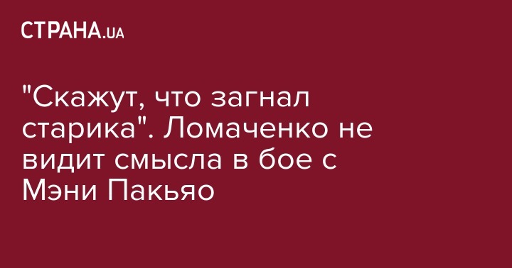 Мне приятно, конечно, это хорошие деньги, но я в боксе не ради них. Чтобы я не сказал, будут люди, которые тебя поддерживают и нет. Сейчас скажут, что я трус, не хочу провести бой с легендой. Но я знаю, как и мой отец, что этот бой ничего мне не даст", - сказал Ломаченко.