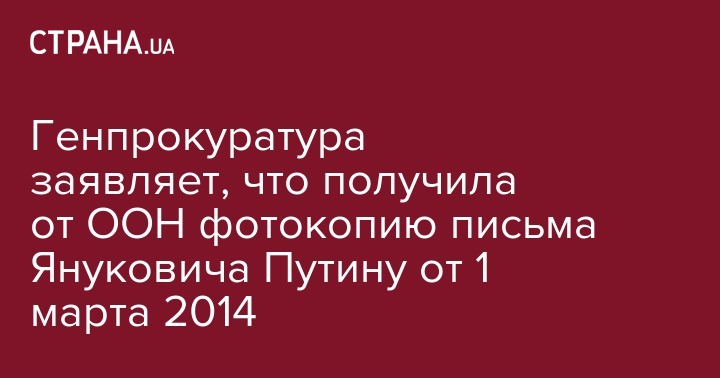Генпрокуратура заявляет, что получила от ООН фотокопию письма Януковича Путину от 1 марта 2014
