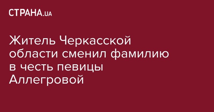 Житель Черкасской области сменил фамилию в честь певицы Аллегровой