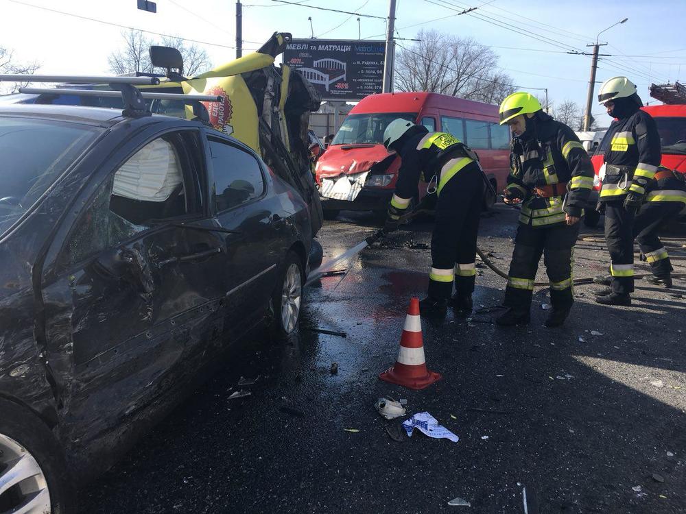 А на выезде из Киева маршрутка с пассажирами врезалась в грузовик и перевернула его.