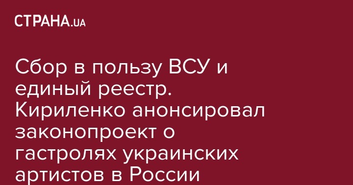 "Я предлагаю ввести гастрольный сбор. Мы предлагаем ставку сбора 20% от всей выручки за билеты с концерта не только сольного, но и любого, где хоть один номер представлен исполнителем из Реестра гастролеров, которые осуществляют гастрольно-концертную деятельность на территории государства-агрессора. Эти средства пойдут на нужды Вооруженных Сил Украины", — отметил Кириленко.