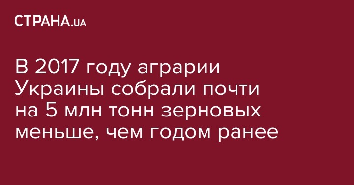 По итогам 2017 года сельскохозяйственные предприятия Украины собрали урожай в 61,3 млн тонн зерновых и зернобобовых культур. Площадь посевов составила 14,5 млн га. В 2016 году урожай зерновых в Украине составил 66 млн тонн.