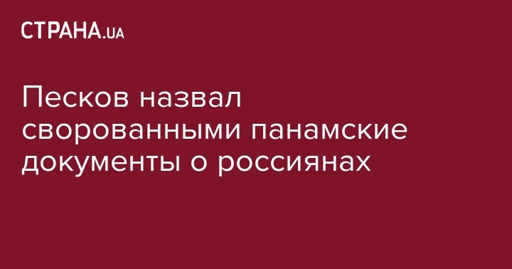 "Панамские документы", которые содержат данные о более, чем 2 тысячах российских владельцев офшорных компаний, пресс-секретарь президента России Дмитрий Песков назвал "сворованными". Об этом сообщает ТАСС.