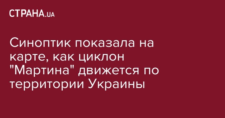 Синоптик показала на карте, как циклон "Мартина" движется по территории Украины