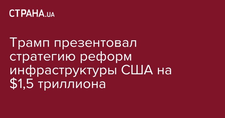 Президент США Дональд Трамп официально представил анонсированную ранее инициативу по масштабной инфраструктурной реформе, которая предусматривает привлечение $1,5 трлн инвестиций в течение следующих 10-ти лет.