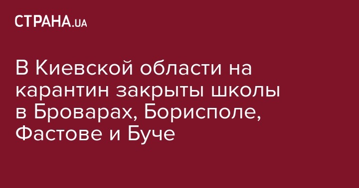 Закрыты школы на карантин в Вышгородском районе и городах Бровары, Борисполь, Фастов, Буча, Переслав- Хмельницкий. Отдельные учреждения и классы пошли на карантин в нескольких селах Броварского, Бориспольского и Тетиевского районов.
