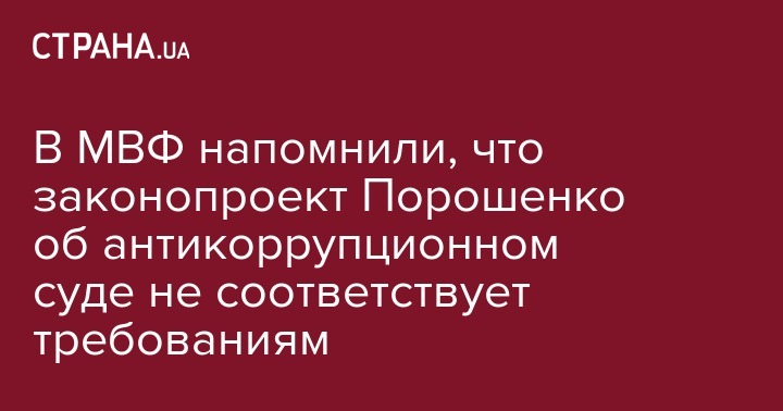 Предложенный президентом Украины Петром Порошенко законопроект о создании антикоррупционного суда не отвечает требованиям и условиям программы Международного валютного фонда.