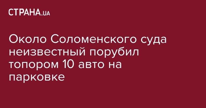 "Неизвестный сегодня в обед забежал во двор суда с топором и начал крушить продвигаясь против часовой стрелки находящиеся там машины. Около 10 машин. От выбитых стёкол до пробитых капотов. Будни Соломенского суда...", - написала Кицюк на Facebook.