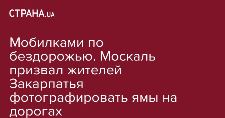 "Служба автомобильных дорог не знает, в каком ужасном состоянии находятся дороги Закарпатья, поэтому я прошу жителей области сделать фото этих ям и выбоин и отправить в Службу автомобильных дорог на электронные адреса. При этом служба не утверждает Закарпатью перечень дорог для ремонта, требуя по каждой из них фото или видео ям, выбоин", - заявил Москаль.