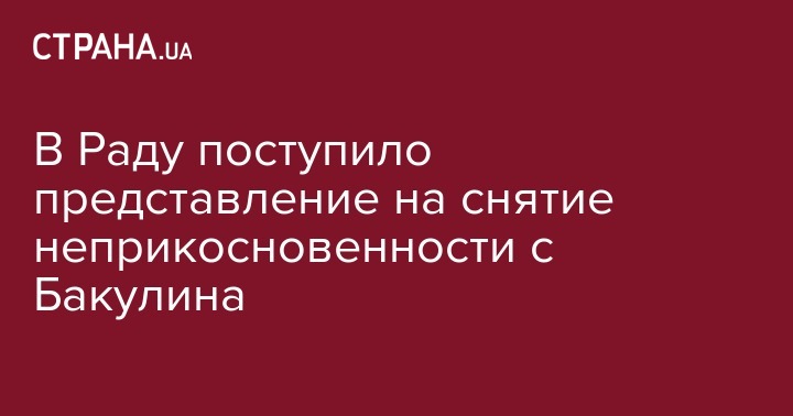 В Раду поступило представление на снятие неприкосновенности с Бакулина