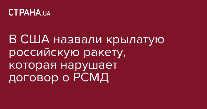 В Пентагоне публично назвали российскую крылатую ракету наземного базирования 9М729 (в американской классификации SSC-8) - нарушающей Договор о ликвидации ракет средней и меньшей дальности (ДРСМД).