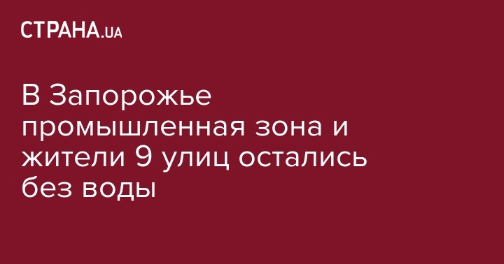В Запорожье промышленная зона и жители 9 улиц остались без воды