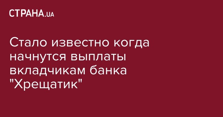 В связи с этим выплаты вкладчикасаем банка "Хрещатик" начнутся на несколько дней позже объявленной ранее даты, но исключительно в определенные законодательством сроки. Ранее сообщалось, что начало выплат вкладчикам запланировано с 12 мая.